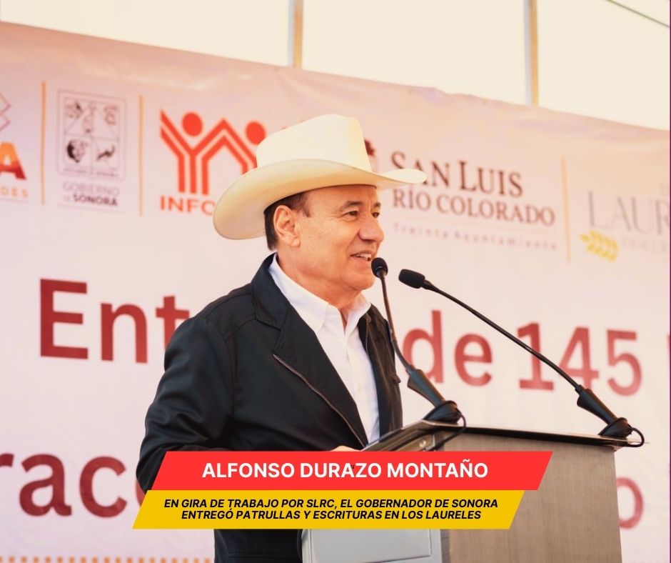 San Luis Río Colorado, Sonora (El Diario de Hermosillo).- Con el objetivo de fortalecer la seguridad, garantizar certeza patrimonial a las familias, mejorar los servicios de salud y reforzar la coordinación fronteriza, el gobernador Alfonso Durazo Montaño encabezó una gira de trabajo en San Luis Río Colorado (SLRC), donde entregó 145 escrituras, 14 patrullas al ayuntamiento, supervisó la construcción del Hospital General de Zona del IMSS y sostuvo una reunión de trabajo en materia aduanal.