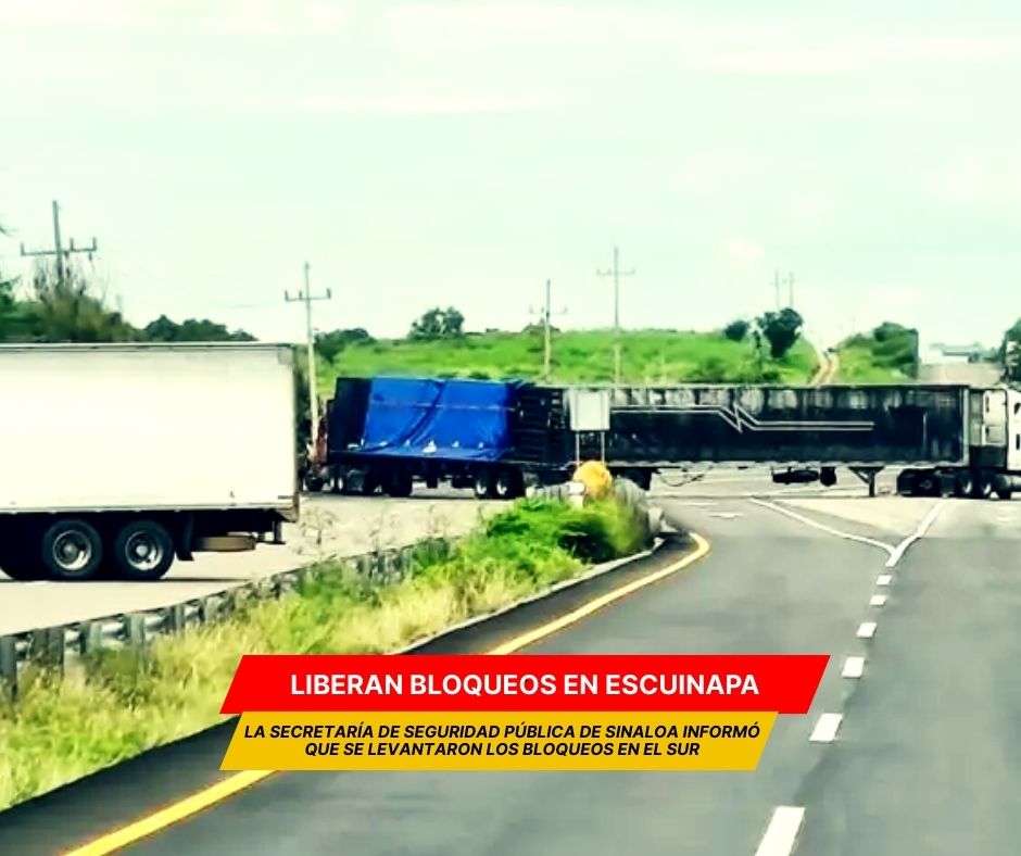 Escuinapa, Sinaloa (El Diario de Hermosillo).- Todas las carreteras que comunican con la ciudad de Escuinapa quedaron ya liberadas de los bloqueos que se presentaron la mañana del domingo 21 de diciembre de 2025, informaron autoridades municipales y de la Secretaría de Seguridad Pública Estatal (SSPE).